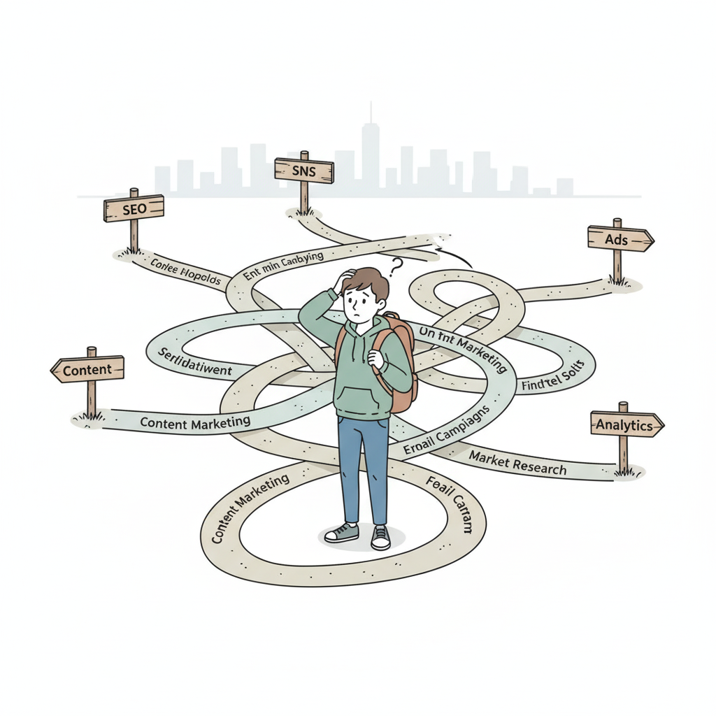 マーケティング学習で最も多い失敗は、すぐに結果が出そうだからと「SEOで勝つ方法」や「バズるSNS運用術」といった「戦術(How)」の本から入ってしまうことです。