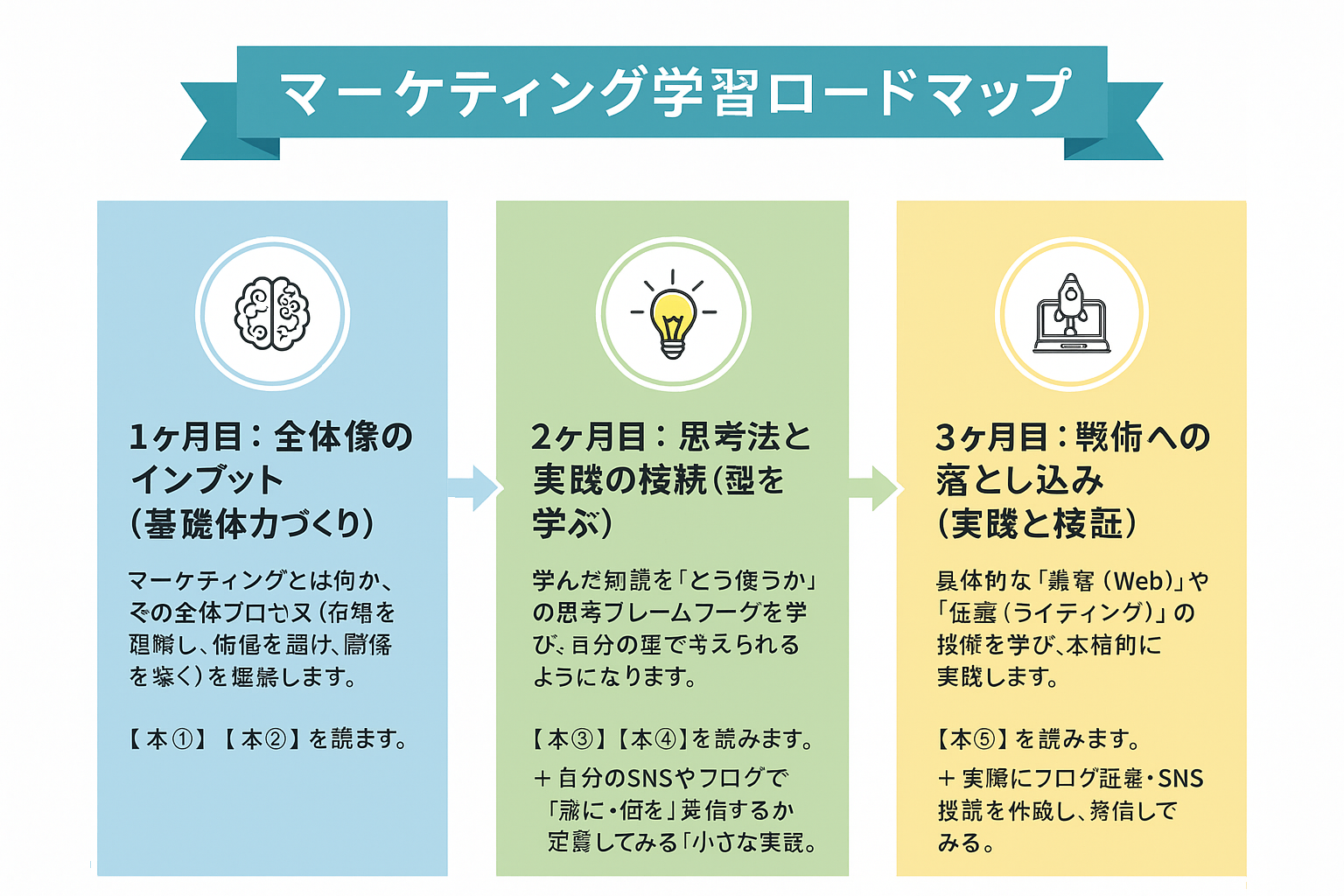 知識ゼロから実践へ導く「マーケティング学習 3ヶ月ロードマップ」