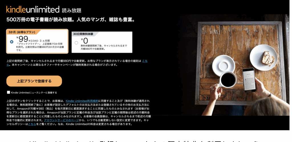 Kindle Unlimited:2,940円 → 297円(2,643円お得)