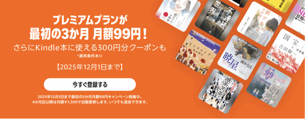 - ブラックフライデーセールは、AudibleもKindle Unlimitedも「3ヶ月間、月額99円」という破格の自己投資チャンス。